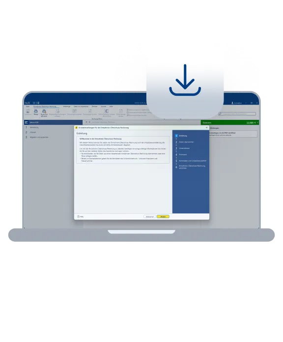 Mit WISO EÜR+Kasse erledigst du deine Einnahmen-Überschuss-Rechnung einfach, schnell und korrekt. Dabei nutzt du den Erfahrungsschatz der WISO-Fachredakteure und behältst alle wichtigen Finanzzahlen jederzeit im Blick.
