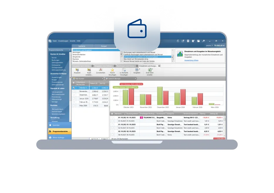 Erfasse deine Finanzen im Handumdrehen. WISO Haushaltsbuch ordnet dein Budget digital, damit du dich entspannt zurücklehnen kannst.