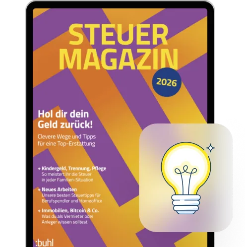 • News für Steuer-Profis: Erhalte das jährliche Magazin und den monatlichen „Steuer-Blick“ mit aktuellen Urteilen und Spar-Tricks direkt in dein Postfach (Gesamtwert: 37,90 €).
