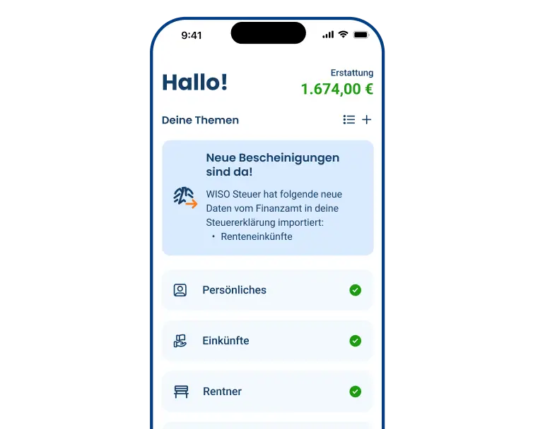 Trotz Steuerpflicht kein Drama: WISO Steuer führt Rentner Schritt für Schritt, füllt die Steuererklärung automatisch aus und hilft, bares Geld zu sparen.