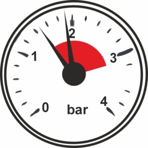 Wurden die Heizkörper entlüftet, dreht man die Thermostate auf (Stufe 3) und startet die Heizung wieder. Jetzt kontrolliert man noch den Wasserdruck der Heizung. Die Druckanzeige muss in dem roten Feld des Thermostates stehen. Bei einem zweistöckigen Einfamilienhaus sollte der Druck zwischen 1,5 und 2,0 Bar liegen. Den genauen Druck entnehmen Sie aber bitte der Bedienungsanleitung Ihrer Heizung. Hier wird auch erläutert, wie man Wasser nachfüllt, wenn der Druck der Heizung zu niedrig ist.